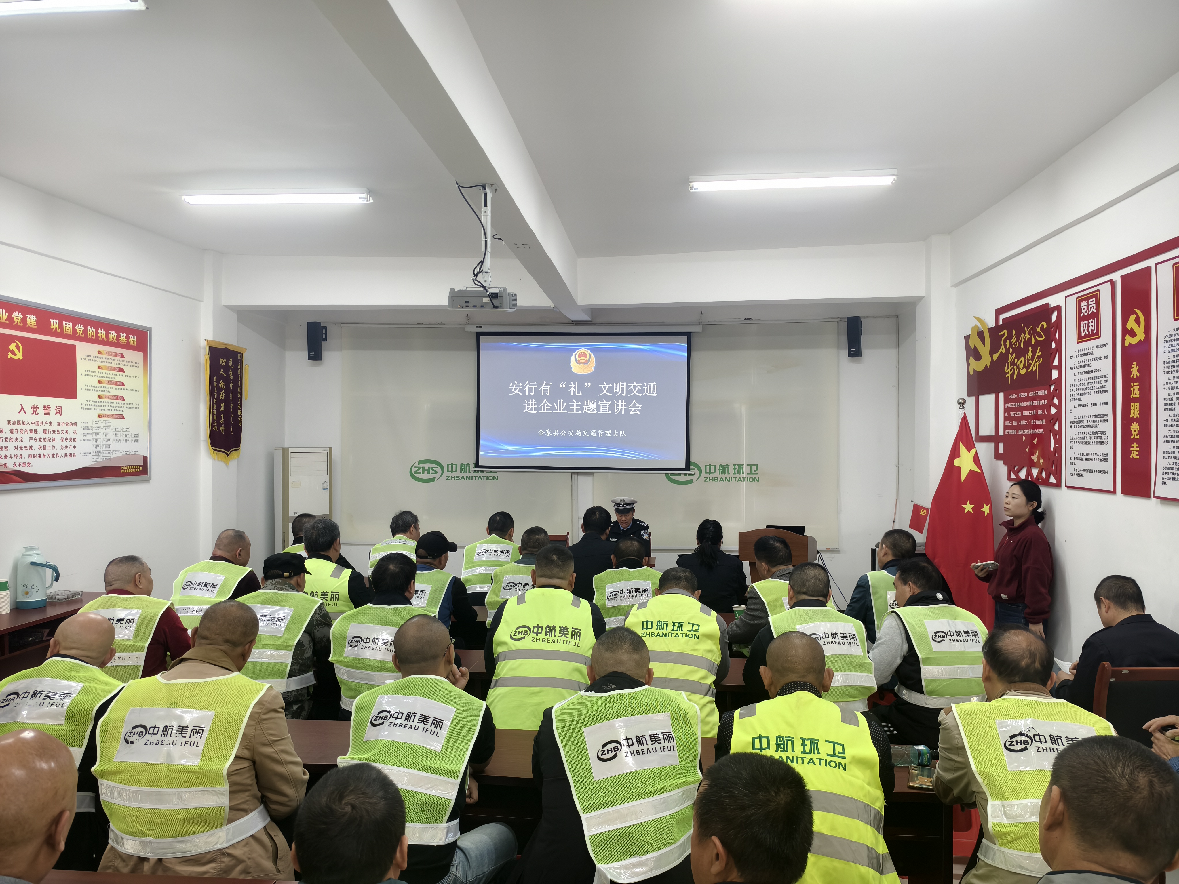 为深入推进“安行有礼”文明交通宣传教育活动,10月24日,安徽省金寨县公安局交管大队组织宣传民警深入县中航环卫有限公司开展“安行有礼”文明交通宣教活动,为大型环卫作业车辆驾驶员进行交通安全培训,公司负责人及60余名大型环卫车驾驶员参加培训。