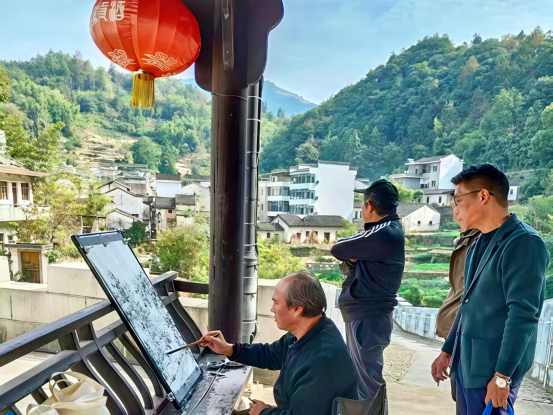 为积累创作素材,捕捉家乡最生动的神韵,十一月初,协会组织了二十余位会员,先后奔赴霞坑镇石潭村、察坑村、萌坑村、洪琴村、鸿飞村等地,开展了为期多日的沉浸式写生活动。这些生于斯、长于斯的农民艺术家们,背负画具,行走于熟悉的田埂巷陌,以最真挚的目光重新审视身边的风景。在石潭的云海晨曦间,在察坑的青石古道上,在萌坑的斑斓秋色里,在洪琴的潺潺溪水畔,在鸿飞的连绵远山下,他们凝神观察,挥毫泼墨,致力于将心中最深沉的家山印象付诸笔端。