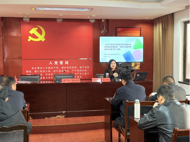 会上,张妮对总局75号令中质量安全总监、质量安全员配备要求,以及日管控、周排查、月调度工作制度进行逐条解读,明确生产单位主要负责人对产品质量安全全面负责,质量安全管理人员拥有风险处置一票否决权等核心责任。针对重点工业产品质量安全追溯工作,会上还邀请了已开展重点工业产品质量安全追溯工作的黄山源点新材料科技有限公司质量安全总监俞宙进行经验分享交流,讲述在推进此项工作中采取的办法和接下来的工作计划,确保公司产品生产、销售、使用各环节关键信息可查可追。