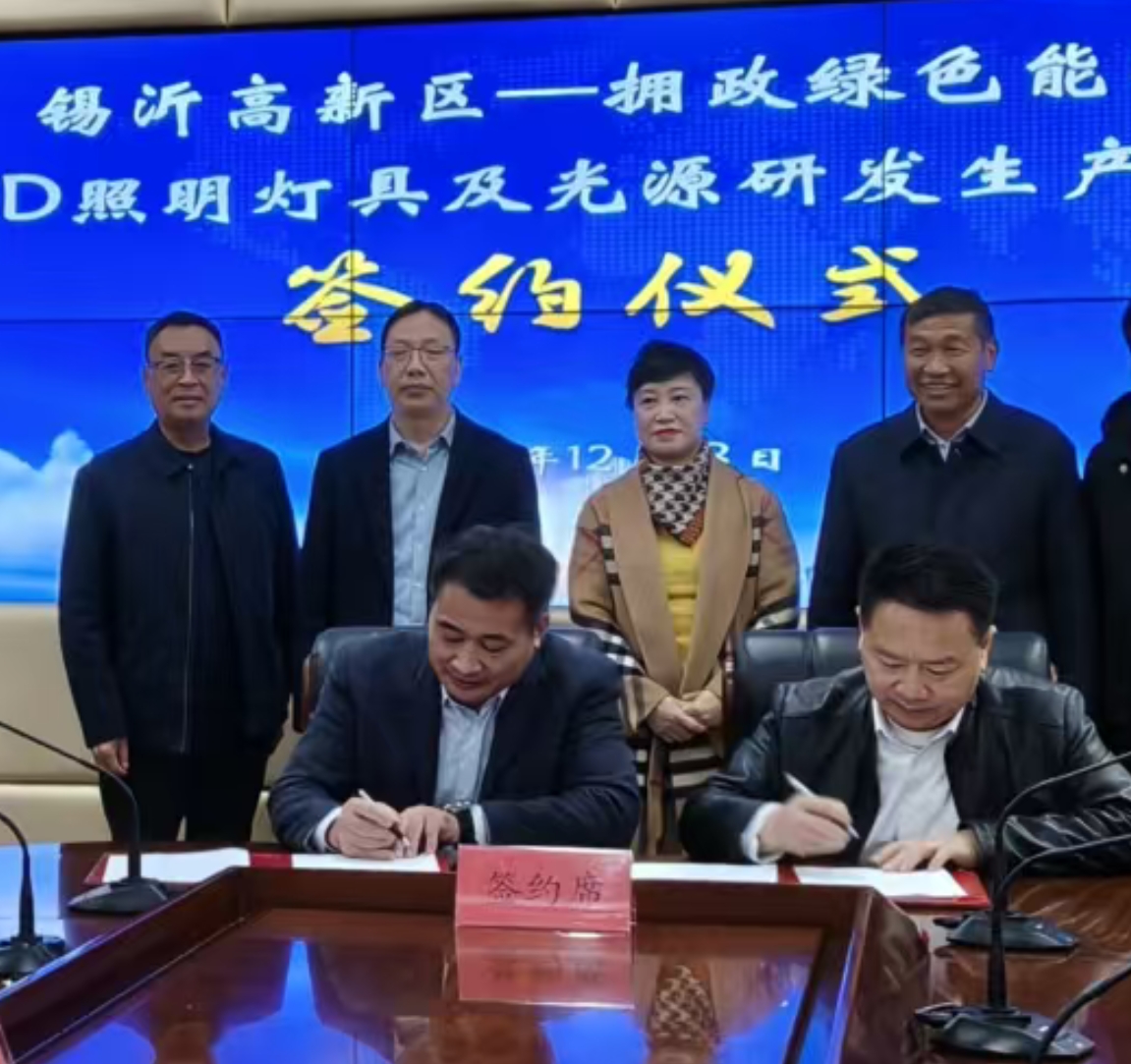 2025年12月13日,江苏徐州新沂市锡沂高新技术产业开发区与拥政绿色能源科技(江苏)有限责任公司举行科技节能健康光源研发项目签约仪式,标志着"新沂都市之光"生产基地正式落户省级高新区,为新沂绿色低碳产业发展注入强劲动能。锡沂高新区党工委乔书记、招商局黄局长等各部门的主要领导、拥政绿色能源科技总裁关彦茹、董事长孙维隆及徐州新沂优秀企业家代表陈德军等共同见证签约。