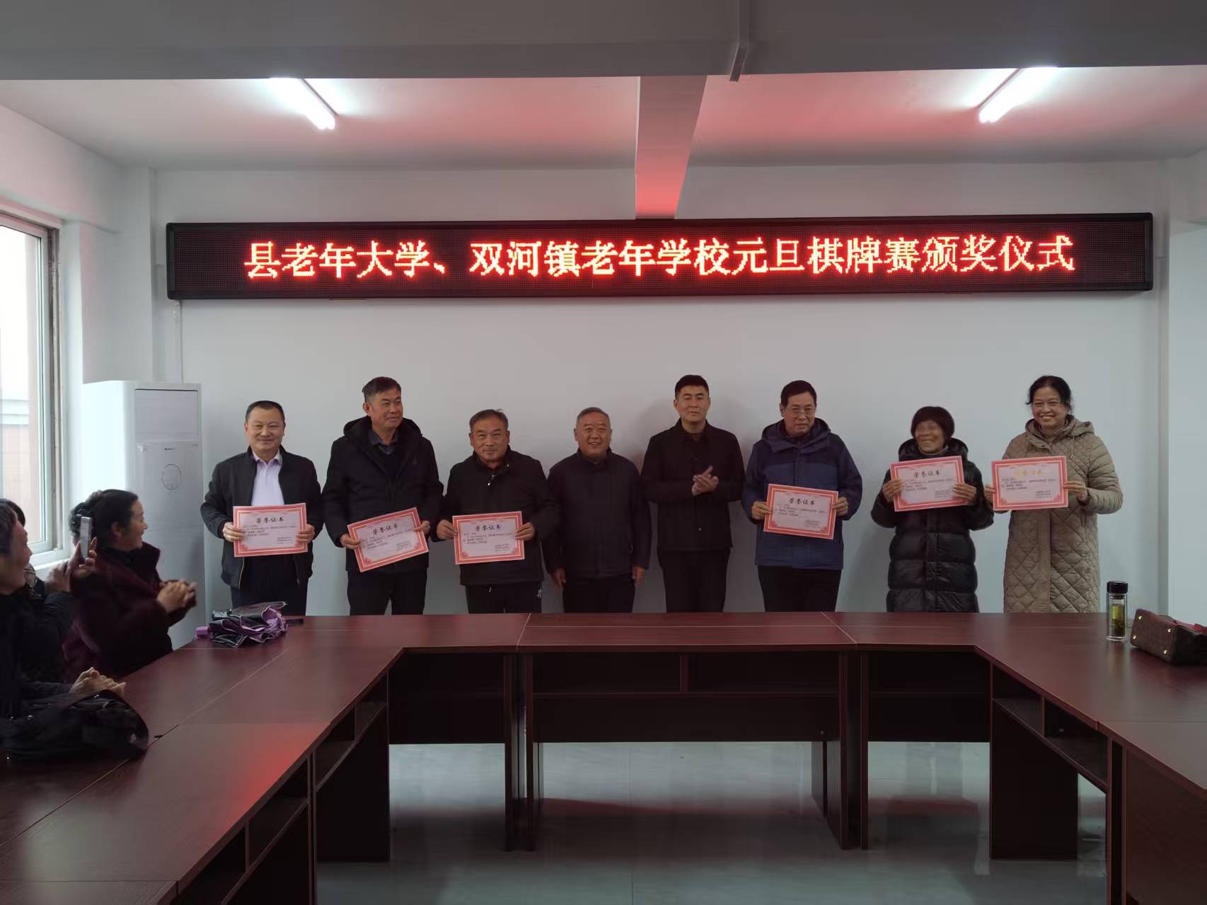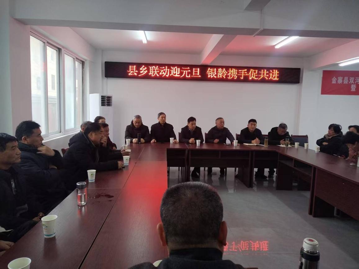 2025年12月31日上午,安徽省金寨县双河镇老年学校与县老年大学联合举办“县乡联动迎元旦,银龄携手促共进”主题联谊活动。县老年大学校长刘正高,副校长曾庆浩、赵丕及部分学员代表应邀赴会。双河镇高度重视此次活动,提前部署、精心组织,扎实做好各项筹备工作。