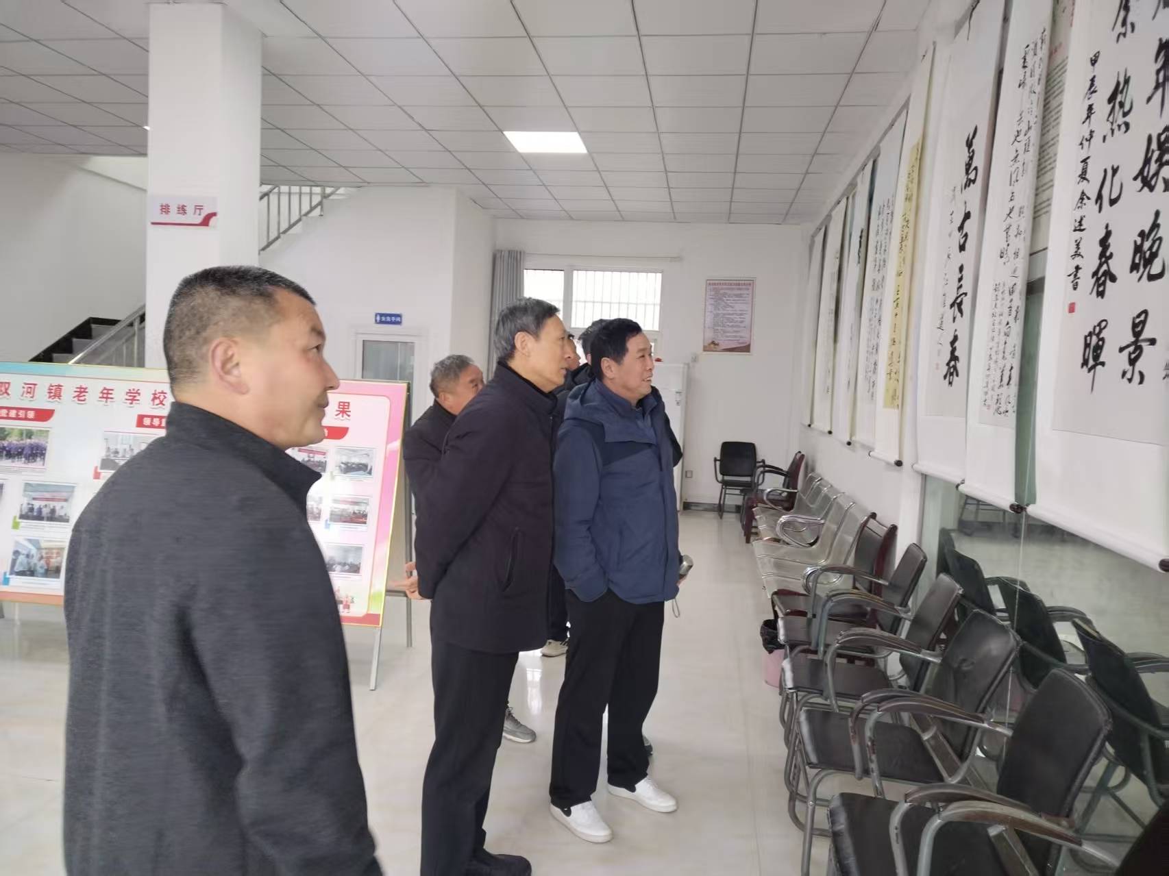 刘正高等一行首先实地参观了双河镇老年学校的教室、活动室及教学成果展陈,对办学成效给予充分肯定。