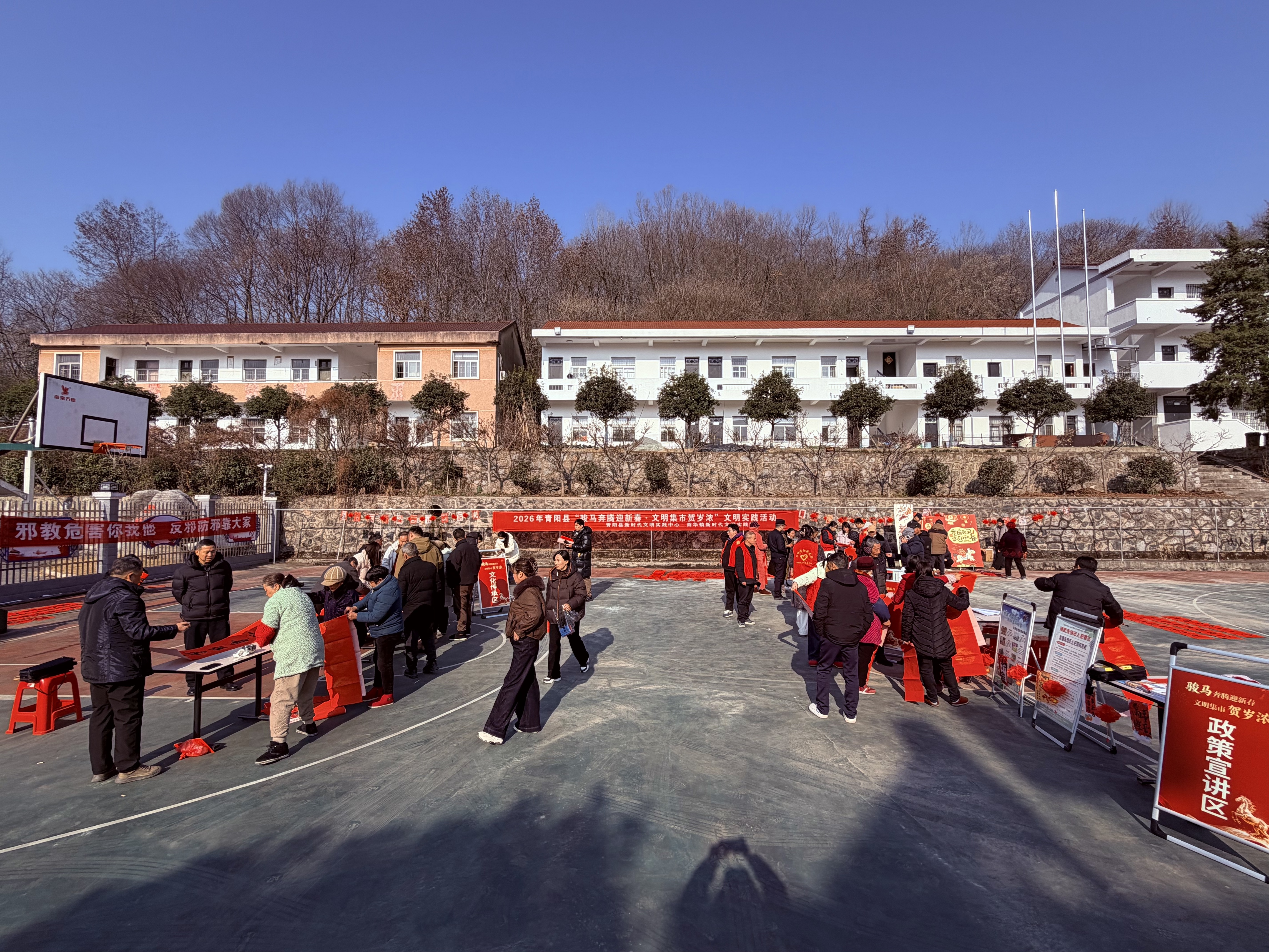 依托新时代文明实践所(站)、党群服务中心、文化广场等阵地,创新多元宣传模式,实现宣传全覆盖、无死角。开展板凳会、庭院宣讲20余次,结合“骏马奔腾迎新春 文明集市贺岁浓”等主题文明实践活动,通过法制宣传、政策宣讲、义诊送暖等形式,传递移风易俗理念。结合廉洁文化建设,打造清风亭1处、廉洁文化景观小品4个、廉洁文化墙绘3处,构建长约10余公里的廉洁文化带,将节俭、孝善、清廉理念融入乡村景观,让群众在耳濡目染中接受文明熏陶。组建广场舞队、锣鼓队等群众文艺队伍,常态化开展惠民演出、农民文化节等活动,以群众喜闻乐见的方式传递正能量。