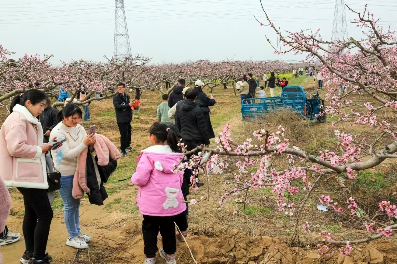 在万亩桃园里,“村在林中、路在绿中、房在园中、人在景中”。吸引数万游客,赏桃花,偿美食,走在花间留影拍照,记录美好时光,尽享春日惬意。一辆辆观光旅游车满载游客,在桃花源来往穿梭,给赏花增添了靓丽风景线。以胡辣汤为首的“名吃一条街”,为游客提供味蕾的需求;以“雏鹏”无抗蛋、胡辣汤料、奉母粉条等为首的“农业特色产品一条街”,为游客提供了游览购物的极好机会。