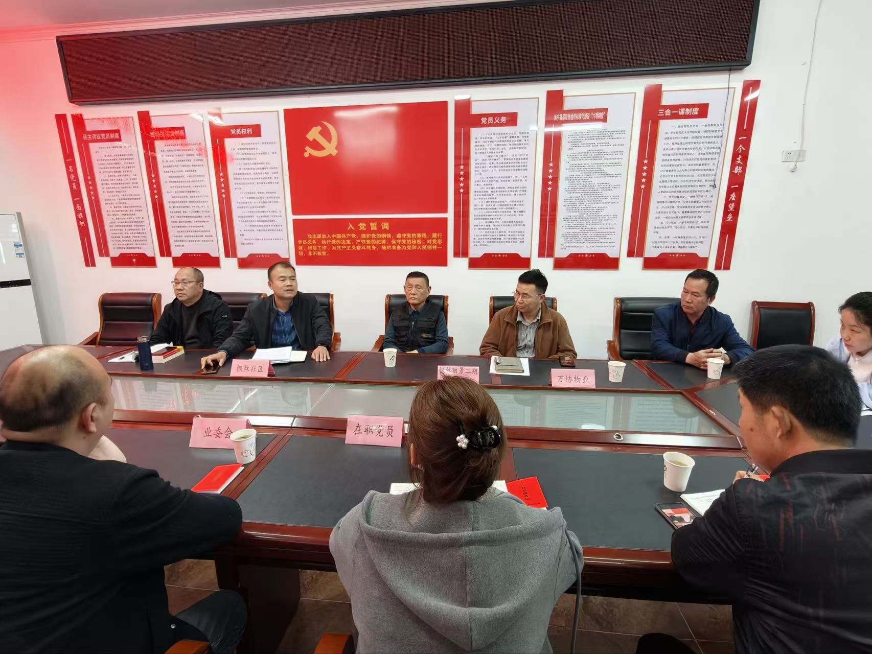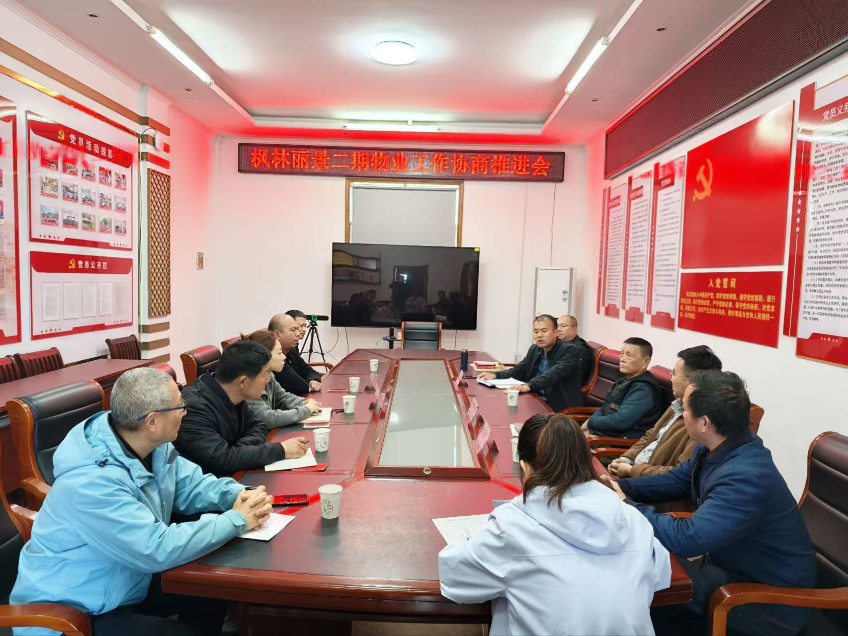 本网讯(记者 周建飞 程东建 通讯员 陆佳)日前,安徽省休宁县海阳镇枫林社区依托社区“清枫”说事议事协商品牌,在社区会议室组织召开了枫林丽景二期物业工作协商推进会。黄山市万协物业管理有限公司、小区业主委员会、在职党员及网格党支部书记等相关代表参加会议。