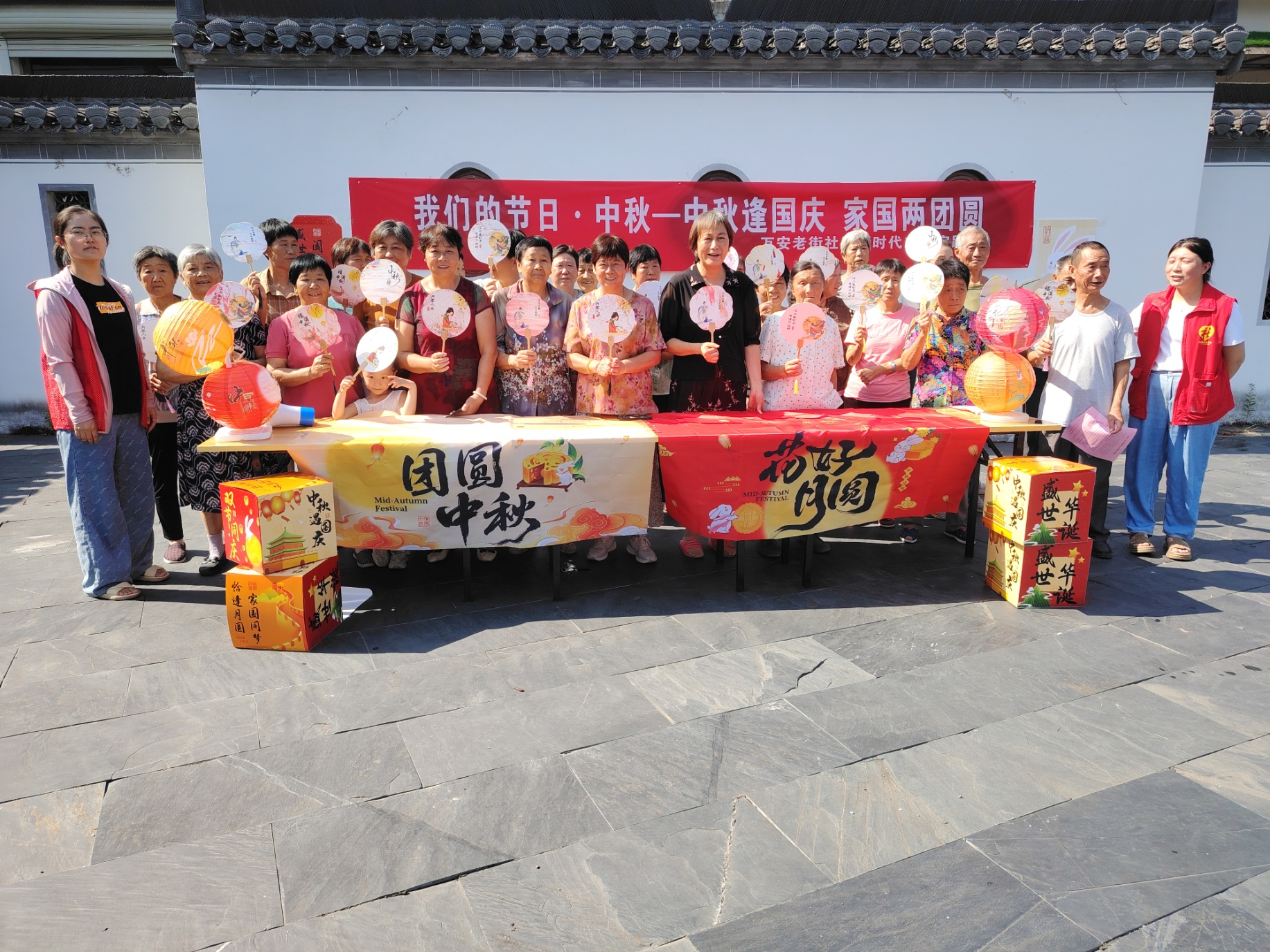 9月28日,安徽省休宁县万安镇万安老街社区在万安老街口广场举办了一场以“中秋逢国庆,家国两团圆”为主题的非遗文化活动,近50位居民欢聚一堂,共叙家国情怀。
