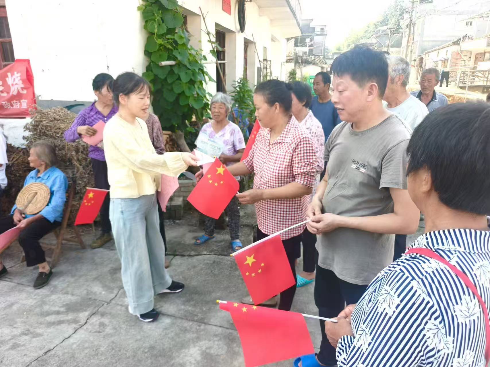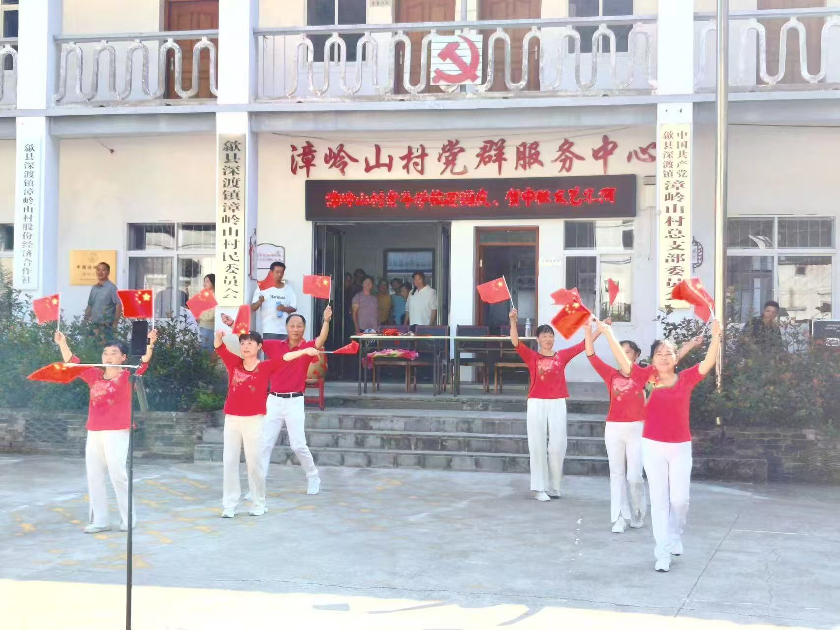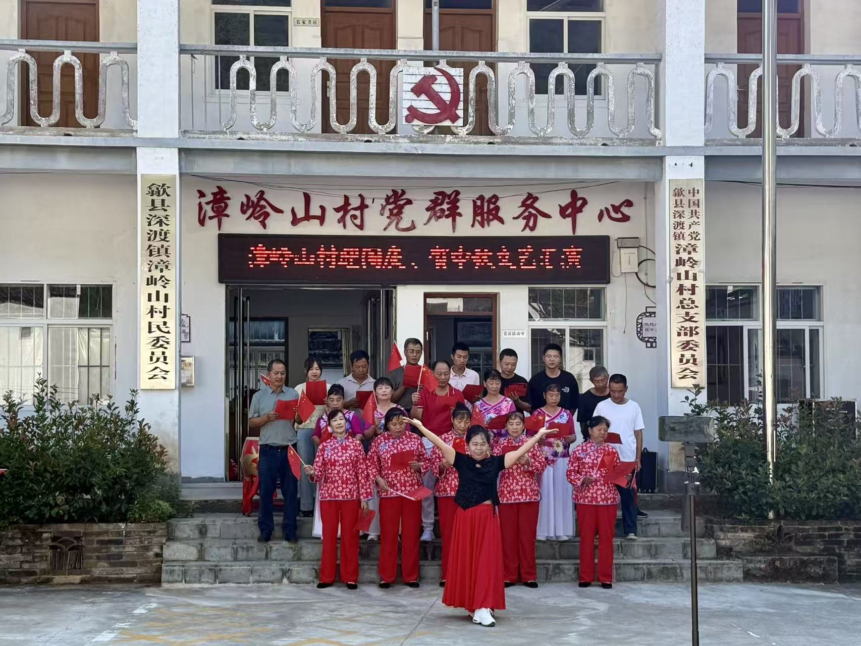 9月28日上午,安徽省歙县深渡镇漳岭山村村委会广场洋溢着双节的喜庆与热闹——“迎国庆 贺中秋”文艺汇演在此火热上演。村民自发齐聚,以歌舞、武术、彩带等自编自导的精彩节目,为祖国76周年华诞和传统中秋佳节献上最真挚的祝福,活动现场红旗飘扬、笑语不断。