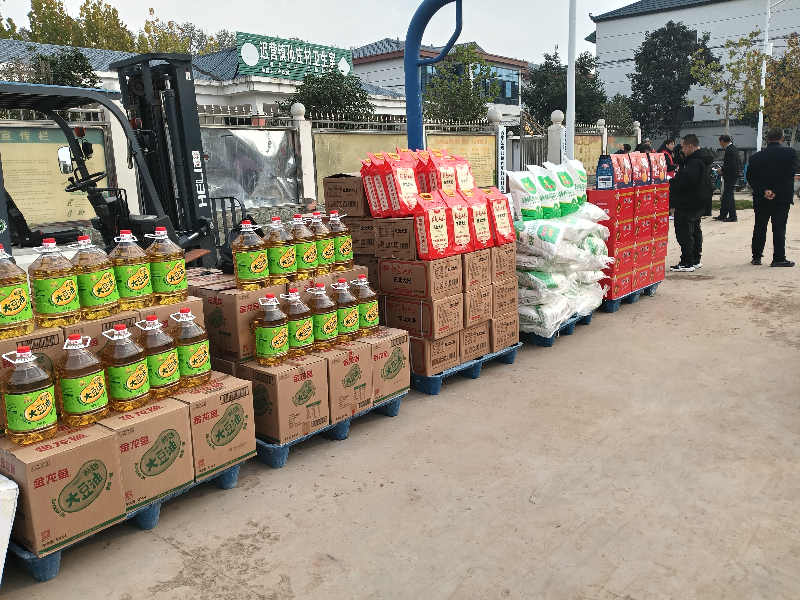 本次活动为全村70岁以上老人佩红戴花,佩戴上金色大字“永远跟党走,幸福更长久”彩带,耀眼瞩目,令人羡慕不已。活动对“现代化好儿子李文博”、优秀“环保卫士张二月”等进行了表彰,颁发了匾牌。活动现场为全村178位70岁以上老人,发放了米面油等节日礼品。特别值得提起的是,活动还特别看望慰问了村老干部90多岁的田秀荣夫妻。