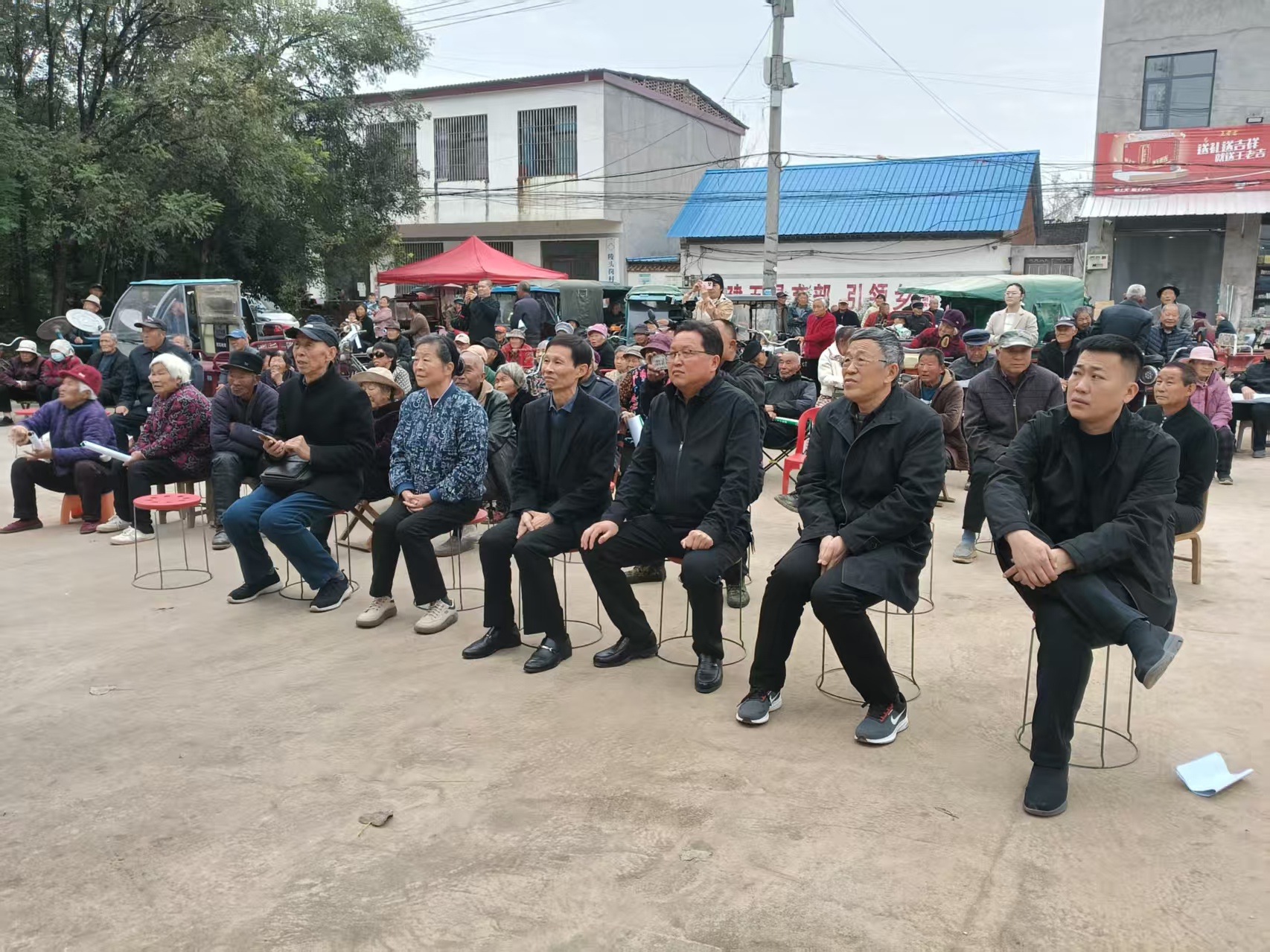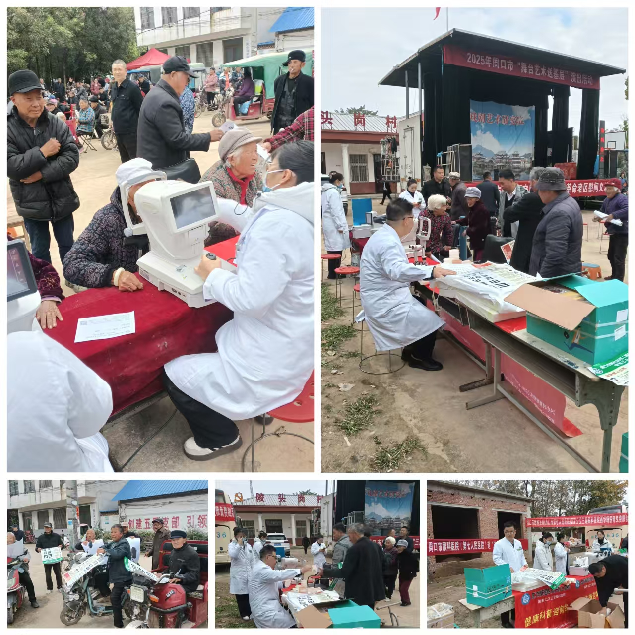 仪式结束,送戏剧、送医疗下老区活动,在紧锣密鼓、优美乐曲中同时开展,送戏剧下老区上午演出了曲剧《清风亭》,下午演唱了曲剧《金殿认子》。送医疗下老区除开展了为人民群众义诊、医疗,还向群众发放了一批视力测试表、水杯等。